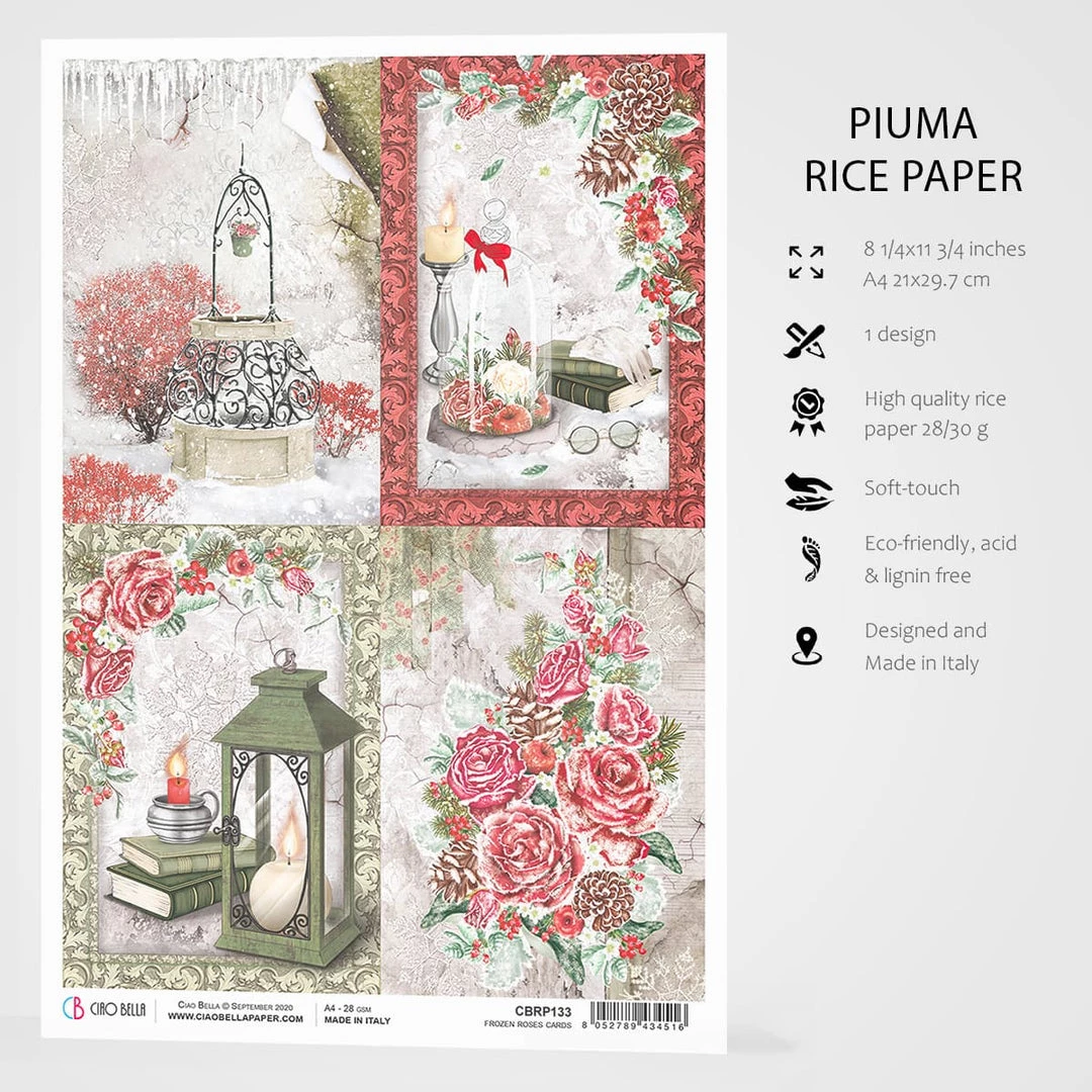 A4Â Rice Paper by Ciao Bella –Â Frozen Roses Cards