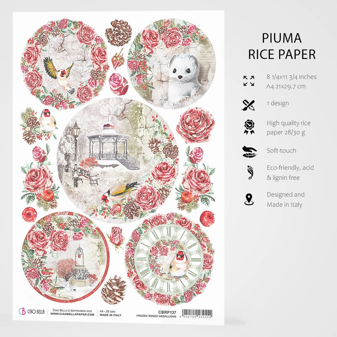 A4Â Rice Paper by Ciao Bella –Â Frozen Roses Medallions