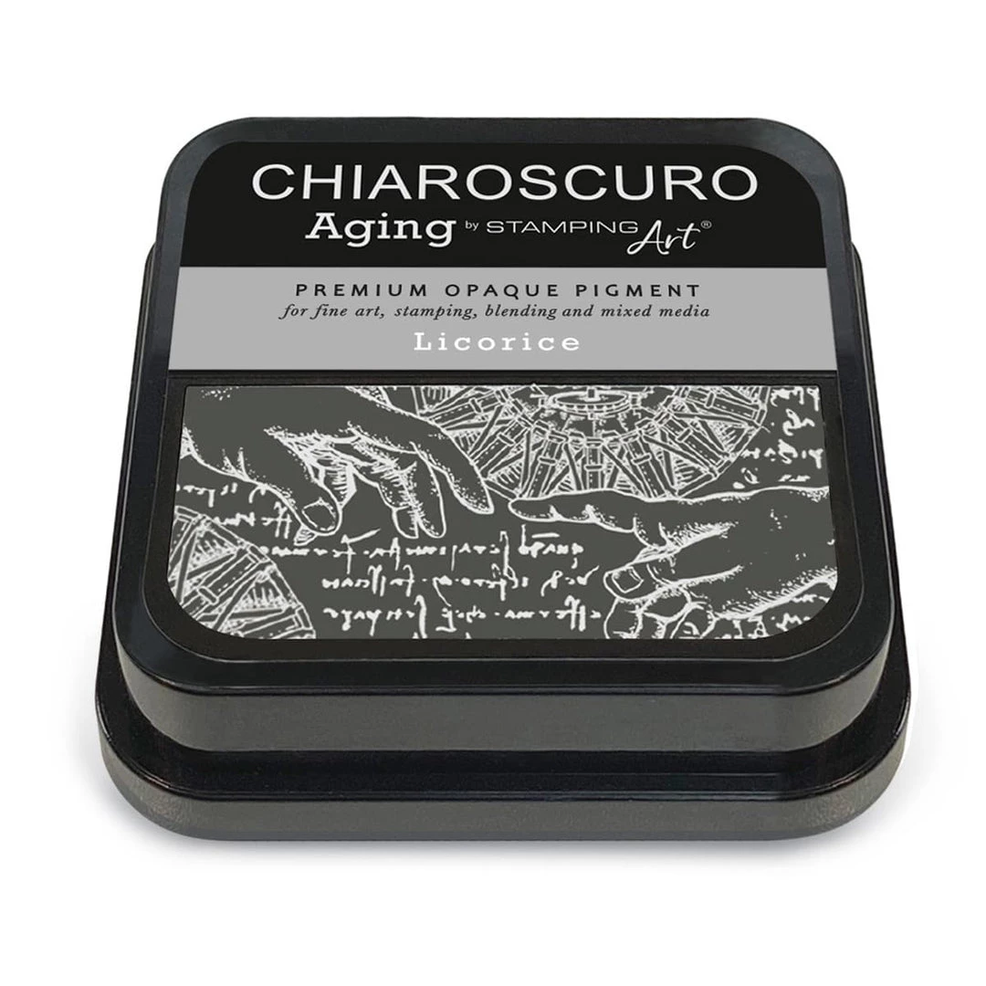 Chiaroscuro Aging is a must-have item for fine, crisp-detailed stamping impressions and long lasting results.  Give your work a fine arts touch with these very quick-drying ink pads that guarantee smear-free stamping results, in a variety of 15 aged nuances. Use them with stamps and stencils to create a fine detail outline for coloring and for the perfect finish to your crafting projects.