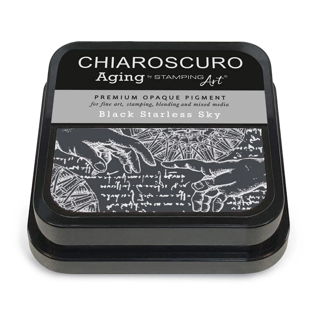 Chiaroscuro Aging is a must-have item for fine, crisp-detailed stamping impressions and long lasting results.  Give your work a fine arts touch with these very quick-drying ink pads that guarantee smear-free stamping results, in a variety of 15 aged nuances. Use them with stamps and stencils to create a fine detail outline for coloring and for the perfect finish to your crafting projects.