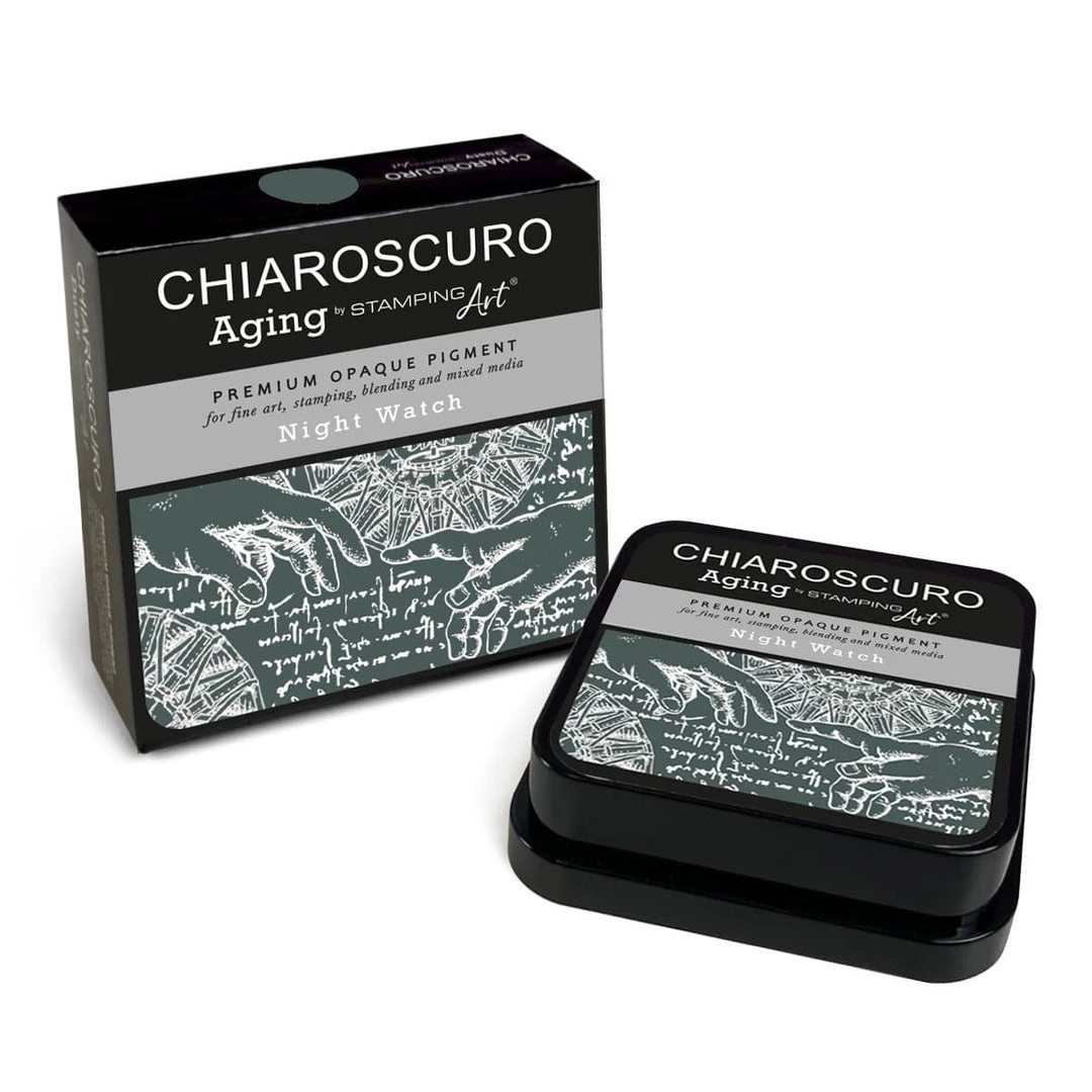 Chiaroscuro Aging is a must-have item for fine, crisp-detailed stamping impressions and long lasting results.  Give your work a fine arts touch with these very quick-drying ink pads that guarantee smear-free stamping results, in a variety of 15 aged nuances. Use them with stamps and stencils to create a fine detail outline for coloring and for the perfect finish to your crafting projects.