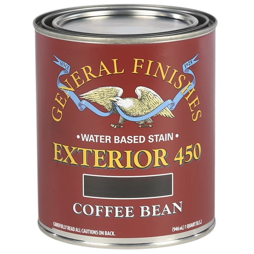 Exterior 450 provides a clear drying tough, protective finish that will withstand the rigors of the sun, rain, and wind. It is suitable for vertical surfaces such as fences, patio furniture, garage doors, entrance doors, outdoor kitchens and interior windows. It is not recommended as a deck finish. Fortified with UV absorbers to stabilize the finish, Exterior 450’s built-in mildewcide retards mold and mildew growth. Tough and flexible, it will resist the expansion and contraction of the wood through hot summers and cold winter. Exterior 450 performs well as a clear coat or as an optional topcoat over General Finishes Milk Paint. It can also be used as a tint base to create custom colors. Warning: We do not recommend Exterior 450 stains or topcoats for exotic woods Ipe, Teak, or other dense oily woods that will get exposure.