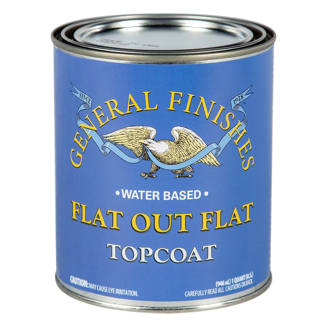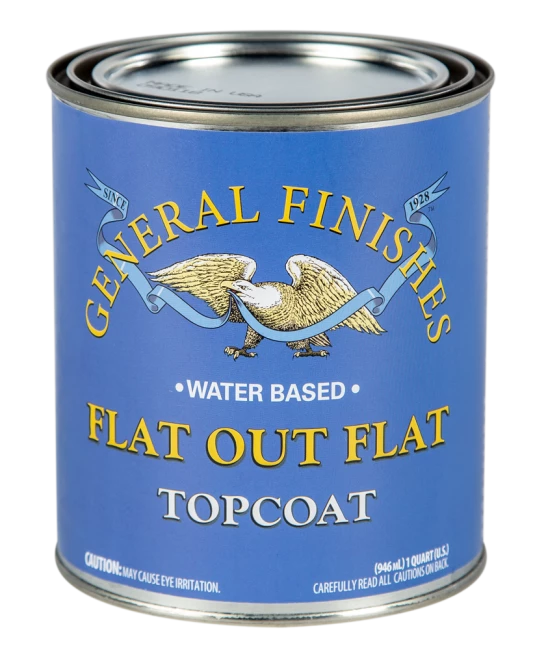 General Finishes Flat Out Flat is a self-crosslinking water-based topcoat that mimics the lustrous look and feel of wax. The increased matting agents used to create “flat look” cause this wood finish to have less clarity, show fingerprints more and provide slightly less durability than High Performance. It is recommended for medium to low-use surfaces other than kitchen cabinets and table tops.