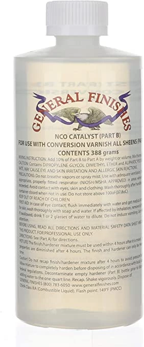 NOTE: This is used in conjunction with General Finishes Conversion Varnish Products. 1 Bottle per gallon. The price for a gallon of conversion varnish includes 1 bottle of Catalyst.Â