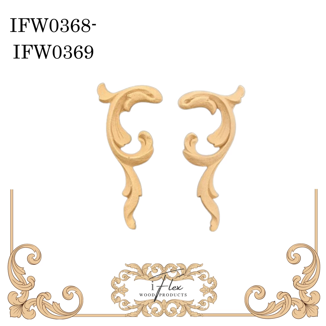 Pair of Decorative Scrolls Applique Embellishment Heat Bendable Wood You Bend Pliable Embellishment – IFW 0368-0369