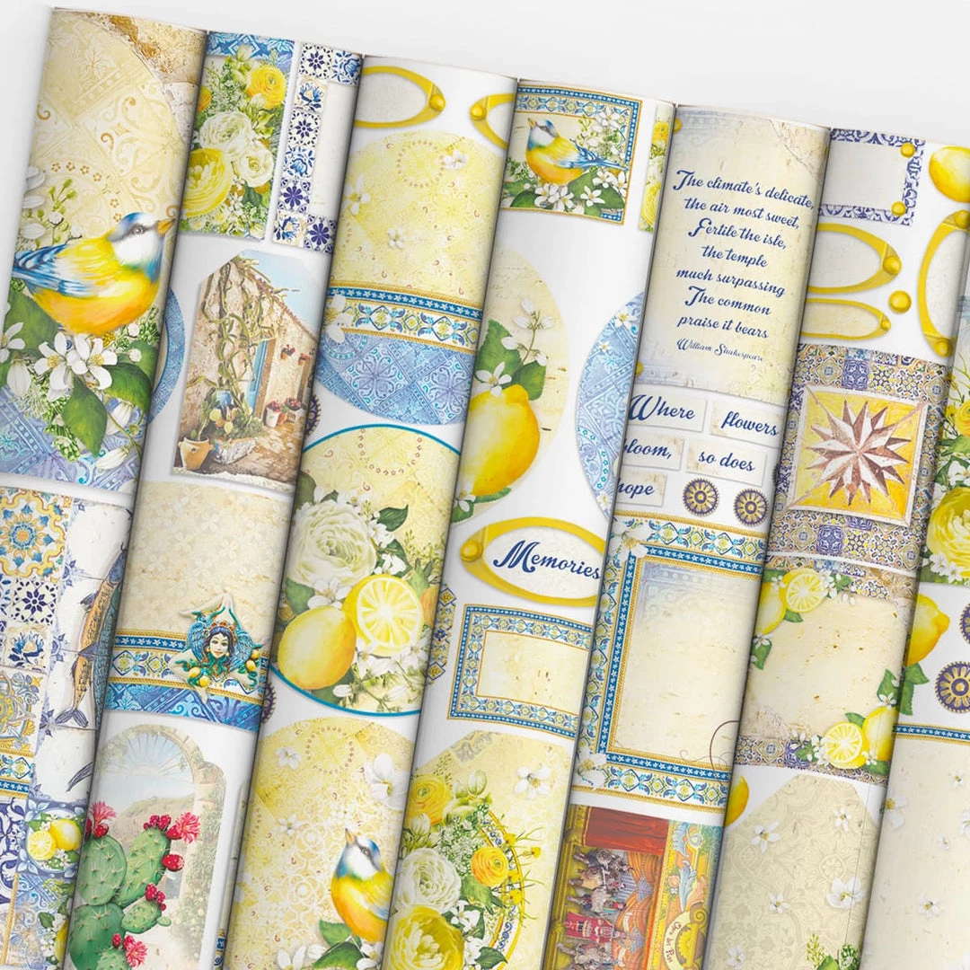 The Sicilia A4 Creative Pad includes includes images of yellow flowers, lemons, blue ceramic tiles and more.