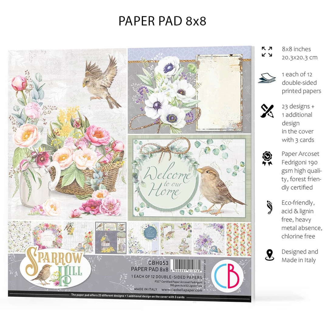 Ciao Bella Sparrow Hill Paper Pad 8×8 12/Pkg