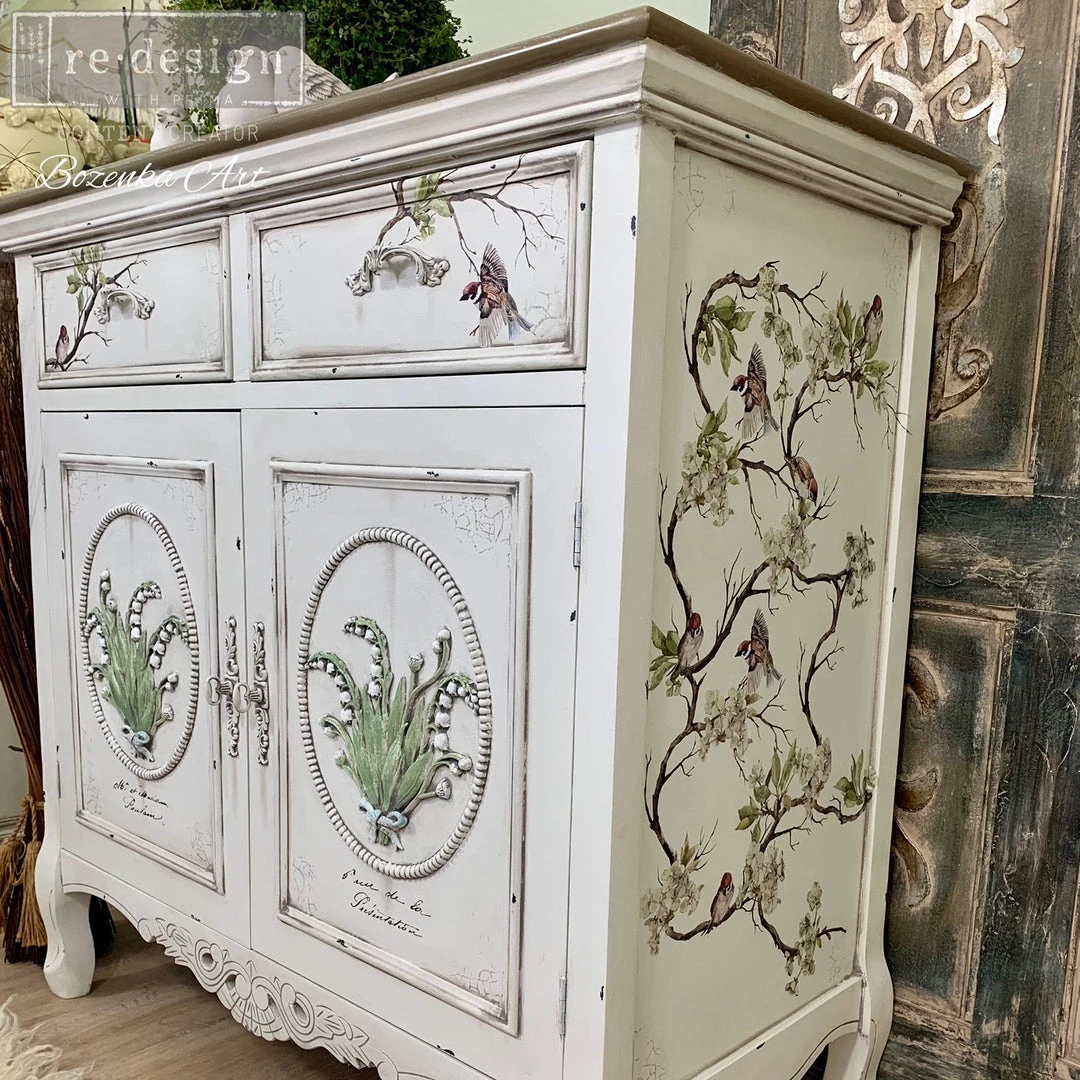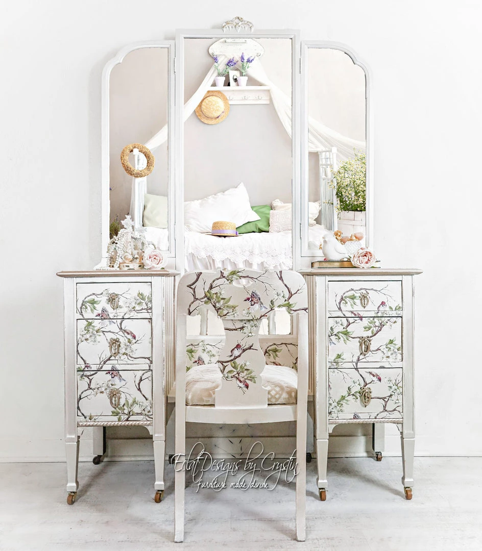 Furniture decals by Redesign with Prima are ready to use. No need to use water, nor prep before using. Each piece is exceptionally detailed and gorgeous. They can be used on walls, furniture, wood, glass, windows, and many more surfaces. The possibilities are endless. You can use this decal on walls, furniture, wood, doors and many more surfaces. The possibilities are endless. The transfer is easy to cut into pieces for easy application. This decal comes in a protective tube, together with a wood stick to help rub the decal on to your piece.