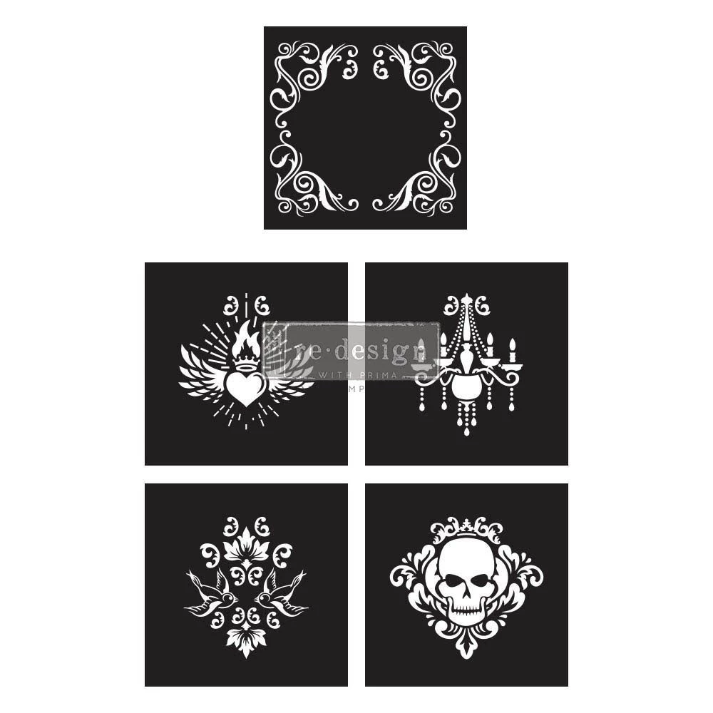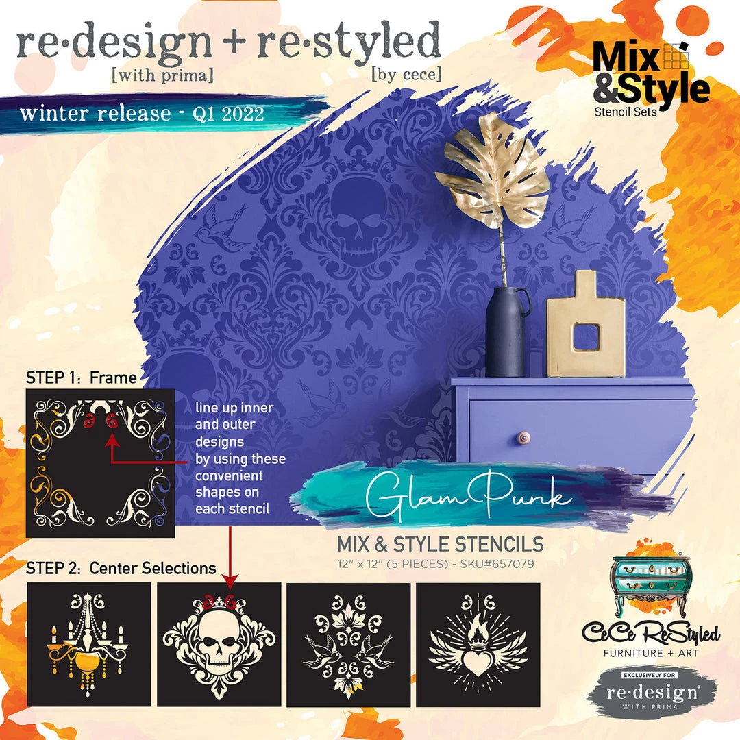 Glam Punk CeCe ReStyled Mix & Style 5 piece Stencil Redesign with Prima – 12″ x 12″