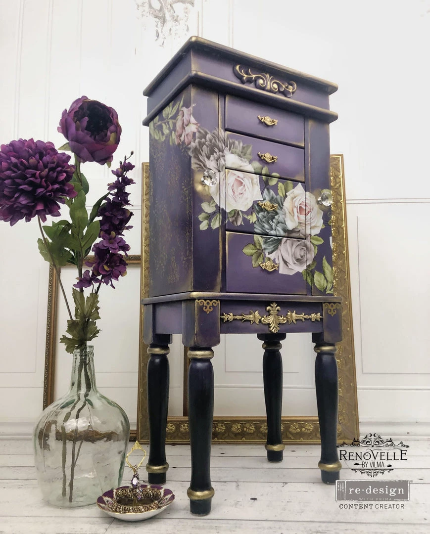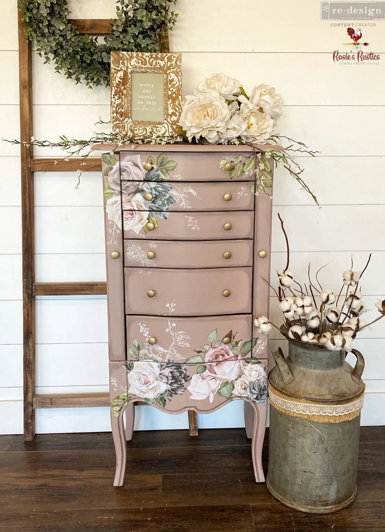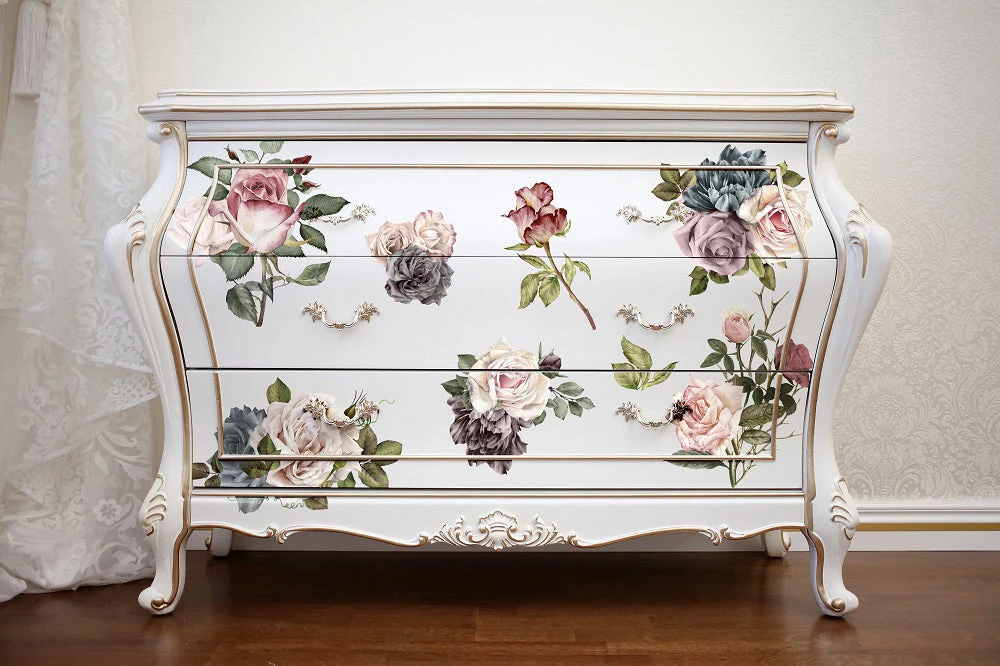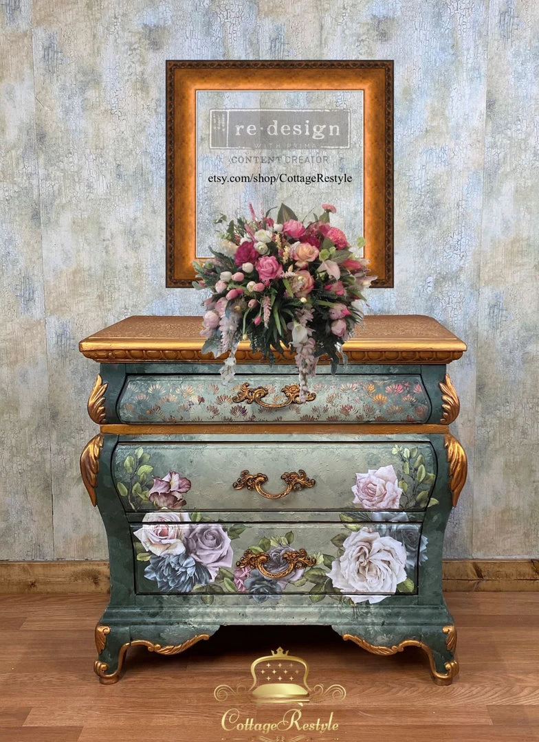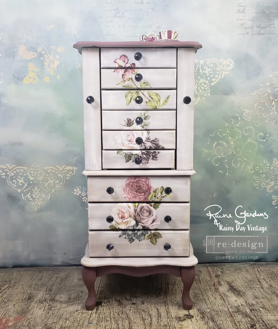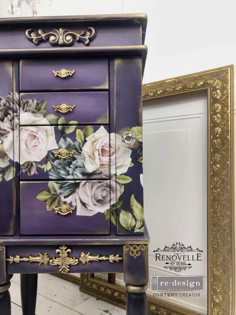 Furniture decals by ReDesign with Prima are ready to use. No need to use water, nor prep before using. Each piece is exceptionally detailed and gorgeous. They can be used on walls, furniture, wood, glass, windows, and many more surfaces. The possibilities are endless. You can use this decal on walls, furniture, wood, doors and many more surfaces. The possibilities are endless. The transfer is easy to cut into pieces for easy application. This decal comes in a protective tube, together with a wood stick to help rub the decal on to your piece.