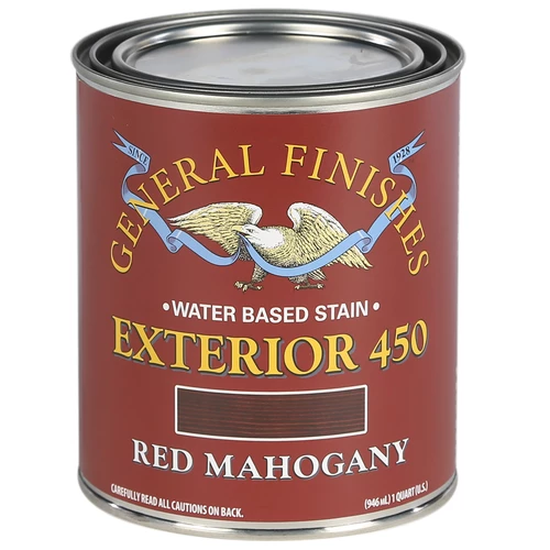 Exterior 450 provides a clear drying tough, protective finish that will withstand the rigors of the sun, rain, and wind. It is suitable for vertical surfaces such as fences, patio furniture, garage doors, entrance doors, outdoor kitchens and interior windows. It is not recommended as a deck finish. Fortified with UV absorbers to stabilize the finish, Exterior 450’s built-in mildewcide retards mold and mildew growth. Tough and flexible, it will resist the expansion and contraction of the wood through hot summers and cold winter. Exterior 450 performs well as a clear coat or as an optional topcoat over General Finishes Milk Paint. It can also be used as a tint base to create custom colors. Warning: We do not recommend Exterior 450 stains or topcoats for exotic woods Ipe, Teak, or other dense oily woods that will get exposure.