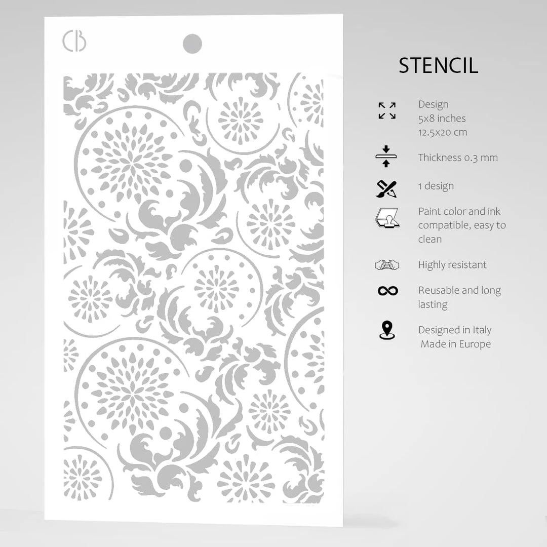Stencil Art line is designed to add layering textures and designs to your projects. It collects different styles, mostly inspired by our scrapbooking paper and rice paper collections, and other fashion, classical, optical, and more, redesigned in Ciao Bella’s style for endless creative possibilities.