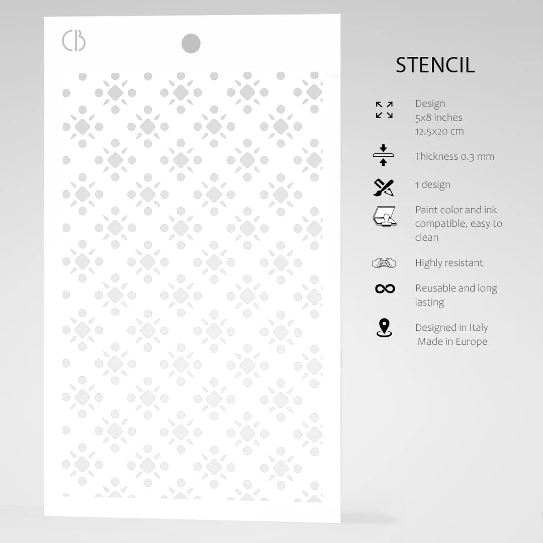 Stencil Art line is designed to add layering textures and designs to your projects. It collects different styles, mostly inspired by our scrapbooking paper and rice paper collections, and other fashion, classical, optical, and more, redesigned in Ciao Bella’s style for endless creative possibilities.